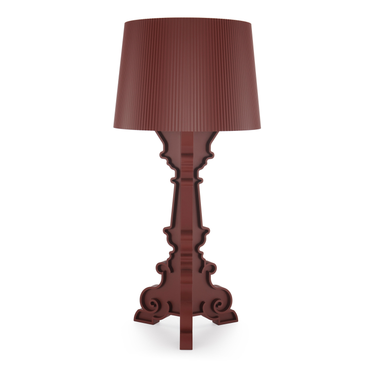 Bourgie s nenapodobitelným stylem je jedním z nejprodávanějších výrobků Kartellu. Kombinuje klasický styl, tradici, bohatost a inovaci. Barokní noha se skládá ze tří zdobených pilířů. Stínidlo je s plisovaným efektem, které nám po zapnutí lampy vytvoří nesčetné odlesky. Stínidlo lampy je jedinečné v upevňovacím systému, který umožňuje tři různé výšky podle druhu použití na 68, 72 nebo 78 centimetrů. Bourgie je nádherná dekorativní stolní lampa, která obohatí každý interiér. Díky své flexibilitě může být použita na stolku v obývacím pokoji nebo vytvořit atmosféru na vašem nočním stolku. Součástí lampy jsou tři žárovky 5W LED, E14.